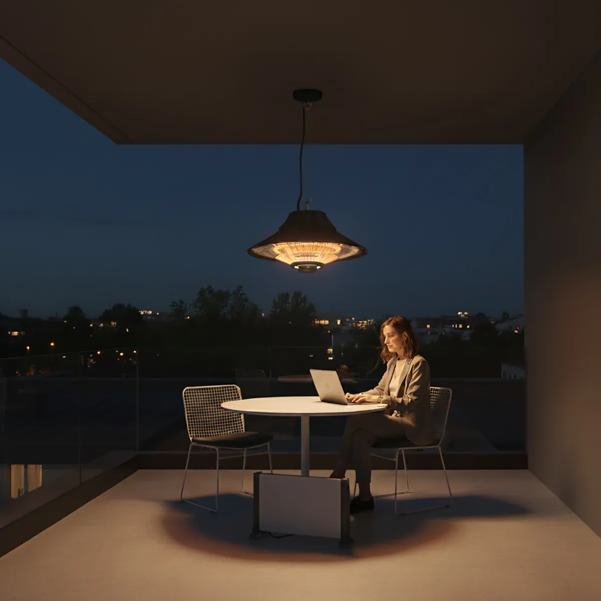 - Geniş Kapsama: 10-12m² alanda her yöne eşit yayılan ısı sağlar. Balkonlar, kafeler, restoran terasları, atölyeler ve kış bahçeleri için idealdir.